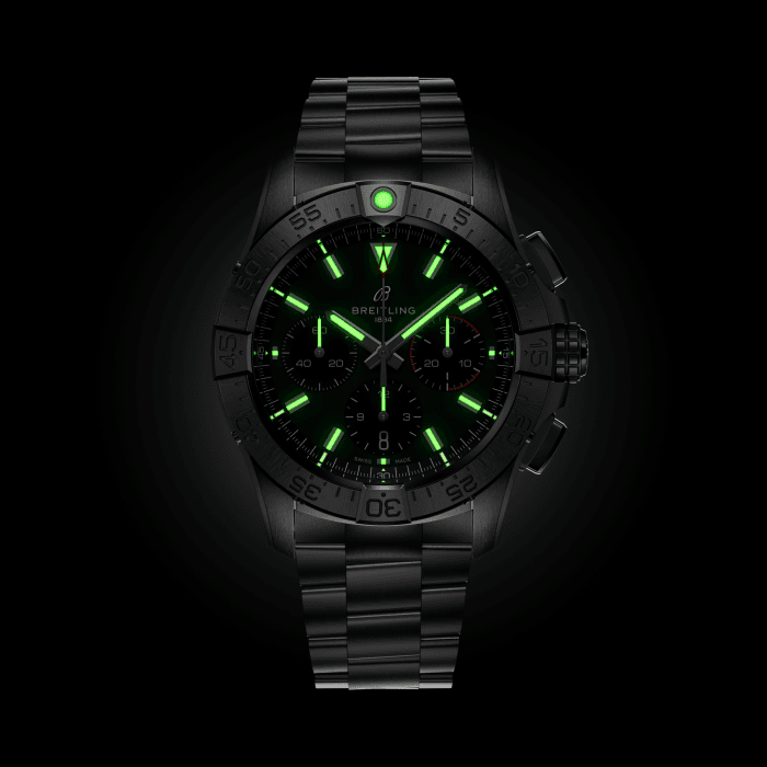 Breitling Avenger B01 Chronograph 42 AB0146101L1A1 de Avenger is gebouwd voor straalpiloten en is ontworpen om de zwaarste cockpits aan te kunnen en terug te blijven komen voor meer. Maar je hebt geen luchtmachtgegevens nodig om het gedurfde ontwerp, de uitzonderlijke veerkracht en de functionaliteit van het volgende niveau te waarderen. De materialen van de collectie combineren prestaties met een verfijnde moderne luchtvaartstijl: roestvrij staal op reguliere modellen; keramiek en titanium op Night Mission zijn het onderwerp van luchtvaartontwerp, terwijl de kleuren van de wijzerplaat zijn ontleend aan militaire uniformtinten. Alle roestvrijstalen versies worden geleverd met een militaire leren band met een vouwgesp of een drierijige roestvrijstalen armband met micro-verstelbare vouwsluiting. Keramische modellen worden gecombineerd met een militaire leren band met een titanium vouwgesp. En of je nu wel of niet een tonrol kunt uitvoeren, je zult alles waarderen over de 300 meter waterbestendigheid van de Avenger, de gemakkelijke gripfunctionaliteit en de corrosiebestendige constructie.