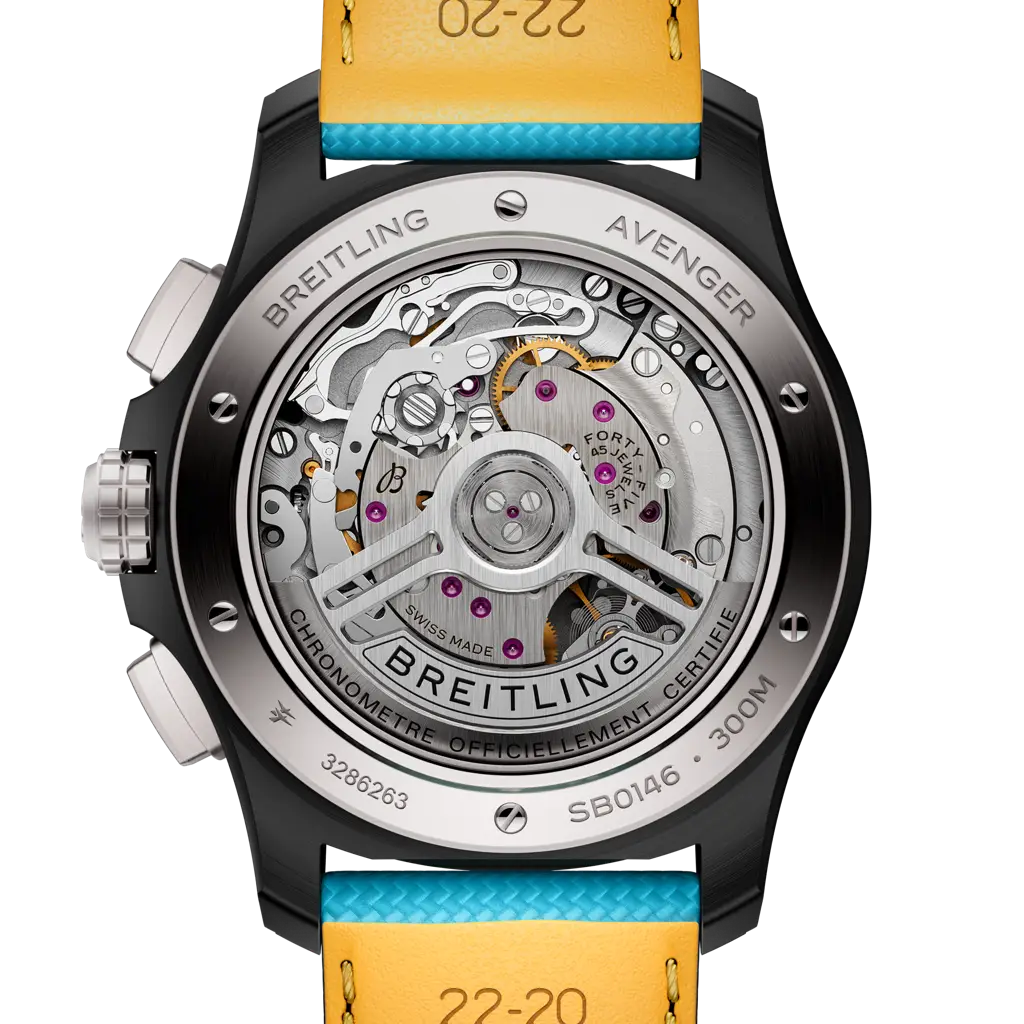 Breitling Avenger B01 Chronograph 42 Night Mission SB0146101L1X1 de Avenger is gebouwd voor straaljagerpiloten en is ontworpen om de zwaarste cockpits aan te kunnen en terug te blijven komen voor meer. Maar je hebt geen luchtmachtgegevens nodig om het gedurfde ontwerp, de uitzonderlijke veerkracht en de functionaliteit van het volgende niveau te waarderen. De materialen van de collectie combineren prestaties met een verfijnde moderne luchtvaartstijl: roestvrij staal op reguliere modellen; keramiek en titanium op Night Mission zijn het onderwerp van luchtvaartontwerp, terwijl de kleuren van de wijzerplaat zijn ontleend aan militaire uniformtinten. Alle roestvrijstalen versies worden geleverd met een militaire leren band met een vouwgesp of een drierijige roestvrijstalen armband met micro-verstelbare vouwsluiting. Keramische modellen worden gecombineerd met een militaire leren band met een titanium vouwgesp. En of je nu wel of niet een tonrol kunt uitvoeren, je zult alles waarderen over de 300 meter waterbestendigheid van de Avenger, de gemakkelijke gripfunctionaliteit en de corrosiebestendige constructie.