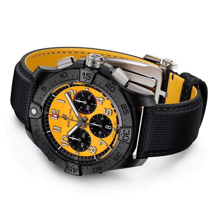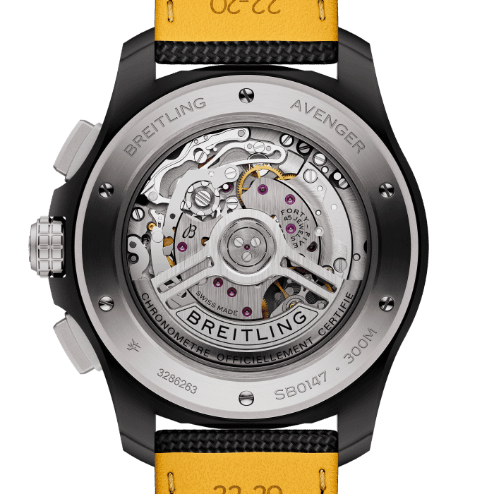 Breitling Avenger B01 Chronograph 44 Night Mission SB0147101I1X2 de Avenger is gebouwd voor straalpiloten en is ontworpen om de zwaarste cockpits aan te kunnen en terug te blijven komen voor meer. Maar je hebt geen luchtmachtgegevens nodig om het gedurfde ontwerp, de uitzonderlijke veerkracht en de functionaliteit van het volgende niveau te waarderen. De materialen van de collectie combineren prestaties met een verfijnde moderne luchtvaartstijl: roestvrij staal op reguliere modellen; keramiek en titanium op Night Mission zijn het onderwerp van luchtvaartontwerp, terwijl de kleuren van de wijzerplaat zijn ontleend aan militaire uniformtinten. Alle roestvrijstalen versies worden geleverd met een militaire leren band met een vouwgesp of een drierijige roestvrijstalen armband met micro-verstelbare vouwsluiting. Keramische modellen worden gecombineerd met een militaire leren band met een titanium vouwgesp. En of je nu wel of niet een tonrol kunt uitvoeren, je zult alles waarderen over de 300 meter waterbestendigheid van de Avenger, de gemakkelijke gripfunctionaliteit en de corrosiebestendige constructie.