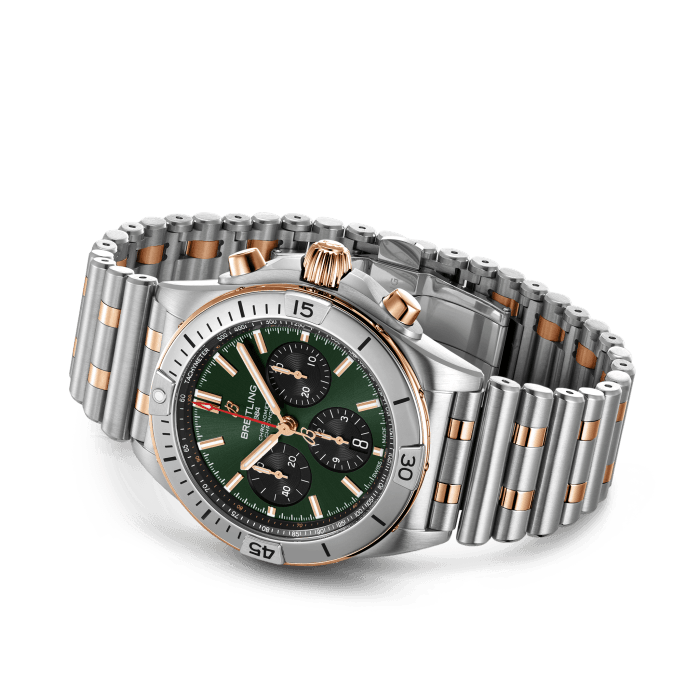 Breitling Chronomat B01 42 UB0134131L1U1 het universele horloge van Breitling voor al uw bezigheden. De Chronomat neemt een belangrijke plaats in in de geschiedenis van Breitling. Geïntroduceerd in 1984, in een tijd waarin extra dunne quartz-uurwerken aan de orde van de dag waren, zette Breitling een gewaagde gok op een indrukwekkend geproportioneerd mechanisch horloge. Gebaseerd op de Frecce Tricolori-chronograaf, die in 1983 was ontwikkeld en gelanceerd in samenwerking met het beroemde Italiaanse luchtsquadron, vierde de Chronomat het honderdjarig bestaan ​​van Breitling in stijl en markeerde de terugkeer van de mechanische chronograaf naar zijn terecht prominente plaats bij het merk dat had gebouwd zijn wereldwijde reputatie op deze ongelooflijke horloges. De Chronomat is verkrijgbaar in verschillende materialen, van roestvrij staal tot luxueus 18-karaats roodgoud, en heeft een kast van 42 mm en de iconische ring met de vier rijderlipjes. De Chronomat is verkrijgbaar met een reeks kleurrijke wijzerplaten en is afgestemd op de kenmerkende “Rouleaux”-armband van metaal of rubber. Hij wordt aangedreven door het interne Breitling Manufacture Caliber 01, een COSC-gecertificeerde chronometer.