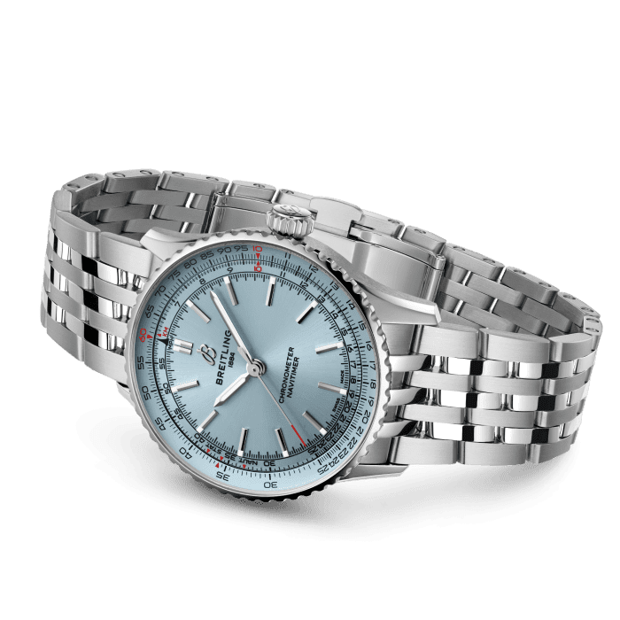 Breitling Navitimer Automatic 41 A17329171C1A1 Breitling’s meest veelzijdige Navitimer – voor onderweg. De Navitimer is een van de meest herkenbare horloges ooit gemaakt. Het staat op de lijsten van verzamelaars van de beste horloges aller tijden. Wat in 1952 begon als een hulpmiddel voor piloten, is iets diepgaands gaan betekenen voor iedereen die dit uurwerk op zijn of haar persoonlijke reis heeft gehad. De Navitimer Automatic en Automatic GMT 41 distilleren het iconische uiterlijk, waarbij de chronograaf wordt weggelaten en toch een uitgebalanceerde wijzerplaatcompositie behouden blijft. De centrale plaatsing van de 24-uursschaal op de GMT en de strakke wijzerplaat van de Automatic zorgen ervoor dat de ingewikkelde rekenliniaal opvalt en tegelijkertijd de algehele esthetiek wordt gestroomlijnd. Om de collectie verder te verfijnen, werd de gekerfde rand verwerkt voor een eigentijds tintje, en afwisselend gepolijste en geborstelde afwerkingen voegen een dynamisch lichtspel toe. Bandjes van alligatorleer en armbanden met een naadloze vlindersluiting bieden comfort en gemak. Het palet bevat kleurrijke wijzerplaten, omhuld met keuze uit roestvrij staal of 18 karaat roodgoud. Deze heruitvinding van de Navitimer, waarbij de klassieker met het hedendaagse wordt gecombineerd, is op maat gemaakt voor zowel liefhebbers als stijlbewusten, en belooft Breitling’s toewijding aan erfgoed en innovatie in elk uurwerk.