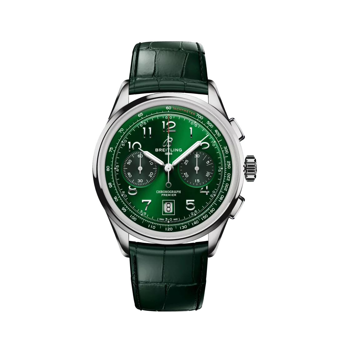 Breitling Premier B01 Chronograph 42 AB0145371L1P2 begin jaren veertig droomde Willy Breitling al van een tijd na de oorlog, waarin nut plaats zou maken voor ongebreideld optimisme. Hij begon een chronograaf te ontwerpen die functioneel, maar ook onmiskenbaar elegant en oneindig draagbaar zou zijn – in zijn woorden ‘het onmiskenbare stempel van onberispelijke smaak’. Hij noemde deze nieuwe lijn de Premier. Om zijn moderne Premier te creëren, heeft Breitling kenmerkende vintage-Premier-details behouden, waaronder de gladde vaste lunette, de wijzerplaat met dubbele registers, gestroomlijnde rechthoekige knoppen en toegepaste Arabische cijfers. De Premier B01 Chronograph 42 is verkrijgbaar in verschillende wijzerplaatkleuren en kastmaterialen. Er is keuze uit een klassieke alligatorleren band of een slanke metalen armband met 7 rijen. De Premier van vandaag voldoet ook aan de compromisloze technische normen van Willy Breitling met zijn uitzonderlijke zelfopwindende uurwerk – het COSC-gecertificeerde Breitling Manufacture Calibre 01 – ontworpen voor maximale precisie, betrouwbaarheid en functionaliteit.