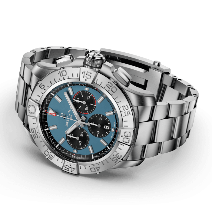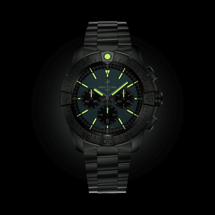 Breitling Super Avenger B01 Chronograph 46 EB0148101C1E1 de Avenger is gebouwd voor straalpiloten en is ontworpen om de zwaarste cockpits aan te kunnen en terug te blijven komen voor meer. Maar je hebt geen luchtmachtgegevens nodig om het gedurfde ontwerp, de uitzonderlijke veerkracht en de functionaliteit van het volgende niveau te waarderen. De Super Avenger-materialen combineren prestaties met een verfijnde moderne luchtvaartstijl: titanium op reguliere modellen; keramiek en titanium op Night Mission zijn kenmerkend voor het luchtvaartontwerp, terwijl de kleuren van de wijzerplaat zijn ontleend aan militaire uniformtinten. Titanium-versies worden geleverd met een keuze uit een militaire leren band met een vouwgesp of een titanium armband met drie rijen en een micro-verstelbare vouwsluiting. Keramische modellen worden gecombineerd met een militaire leren band met een titanium vouwgesp. En of je nu wel of niet een tonrol kunt uitvoeren, je zult alles waarderen over de lichtheid van de Super Avenger, de waterbestendigheid van 300 meter, de functionaliteit met gemakkelijke grip en de corrosiebestendige constructie.