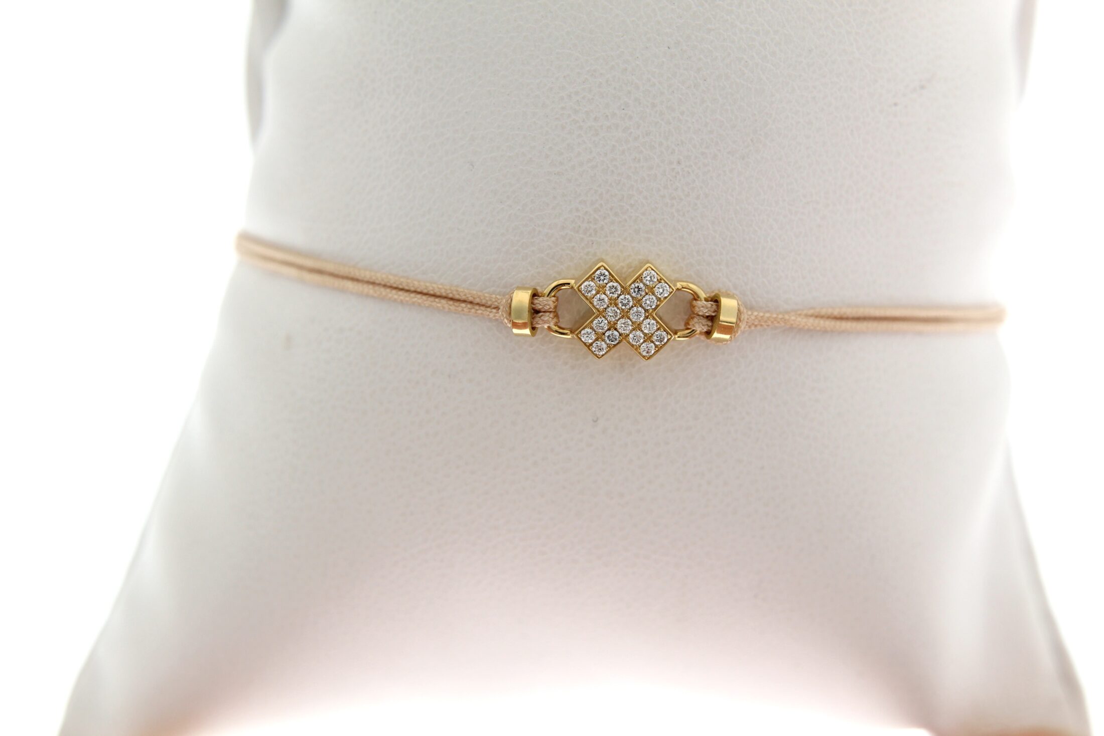 18karaat geelgouden Joy kusje met briljant aan mooi roze koordje