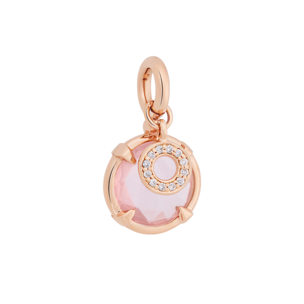rose kwarts 10mm en 12-0.05ct diamant