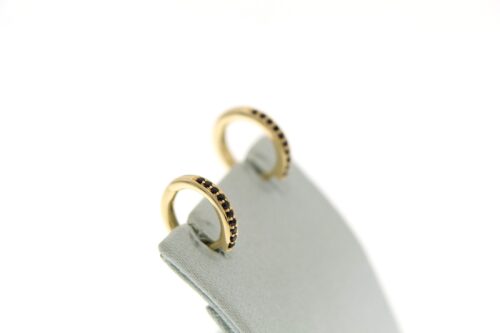 18karaat geelgouden stax creolen van Bron met zwart saffier