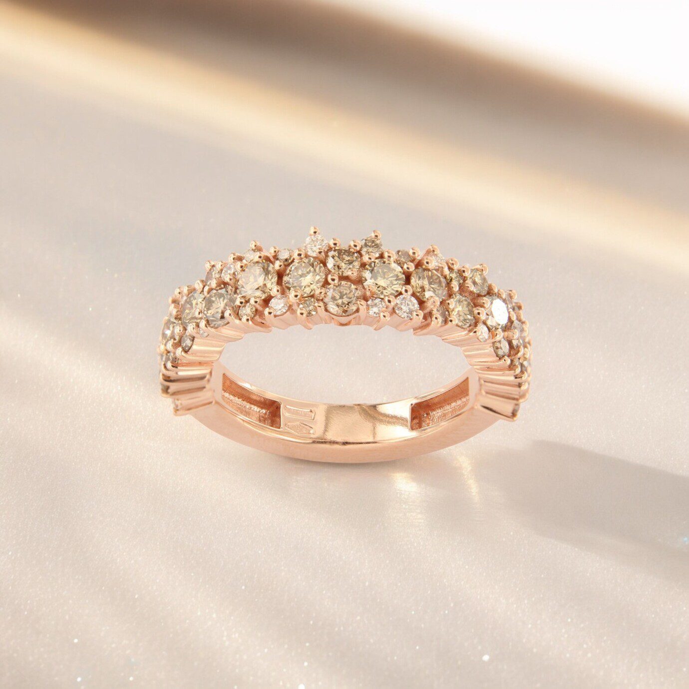 14 karaat rosegoud 1.47 ct champagne diamant en 0.13 ct diamant