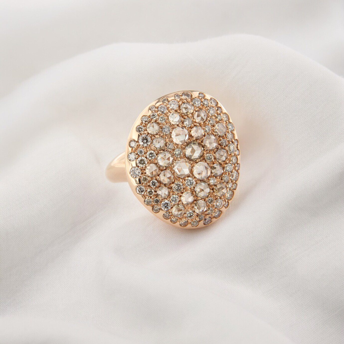 BRUSI, Ring Cannellisimo, roosgeslepen champagne diamant en wit diamant