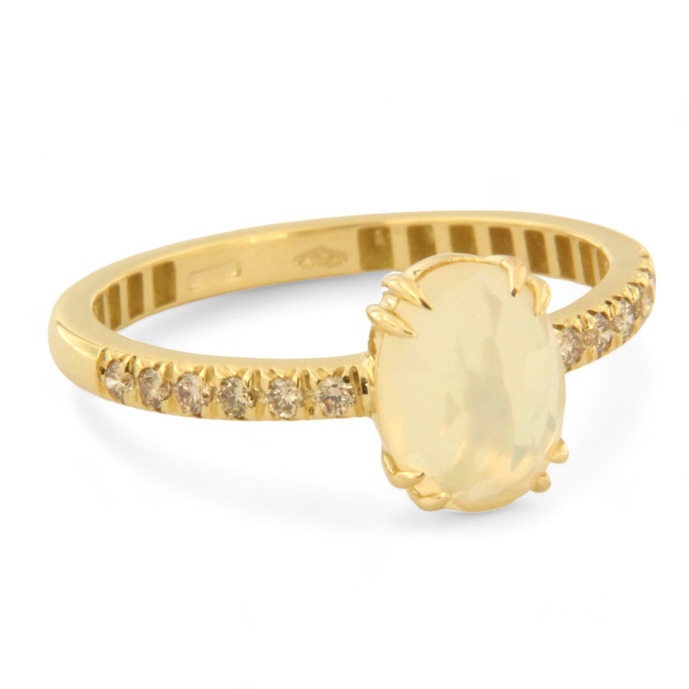 14 karaat rosegoud, opaal en 0.12 ct diamant