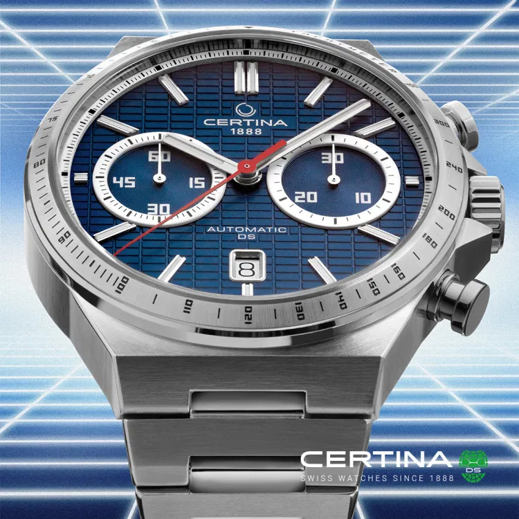 Certina DS-7 Chrono Automaat C043.427.11.041.00 dynamisch, jong en uiterst nauwkeurig: de nieuwe DS-7 Chrono Auto . Dit horloge is geïnspireerd op de opkomende trendsport padel, waar Certina al jaren bij betrokken is. Het nieuwste horloge van de Zwitserse horlogemaker doet deze actievolle sport eer aan met talloze details. De opvallende wijzerplaat heeft een rasterstructuur die doet denken aan het net op een padelbaan, en het eigentijdse automatische uurwerk heeft een anti-magnetische siliconen balansveer die zelfs de snelste rally’s niet van de wijs kunnen brengen.