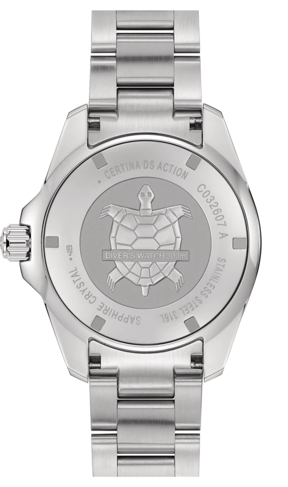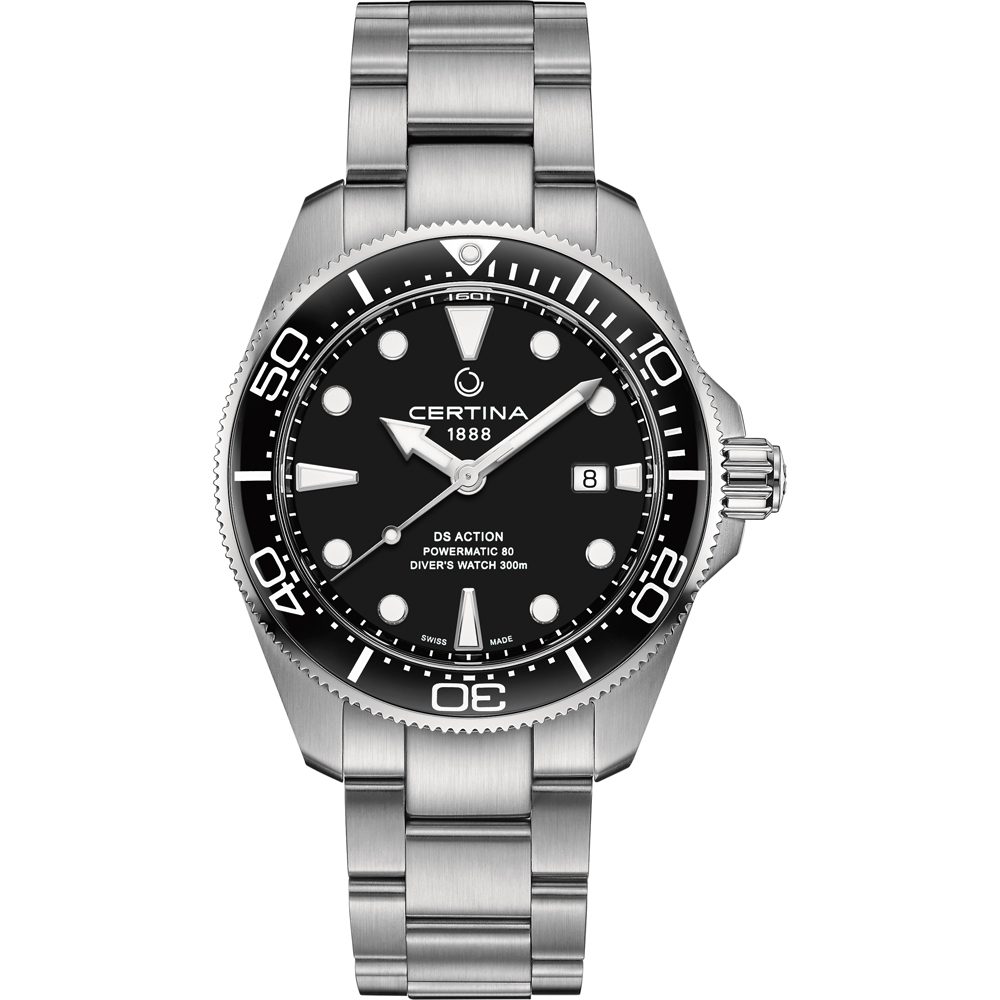 Certina DS Action Diver C032.607.11.051.00 De DS Action Diver is al lang een favoriet onder bewonderaars van de Certina-collectie. De 38 mm-versie ziet er prachtig uit om elke pols en pronkt met zijn uitzonderlijke kwaliteit en eigentijds, compact ontwerp.