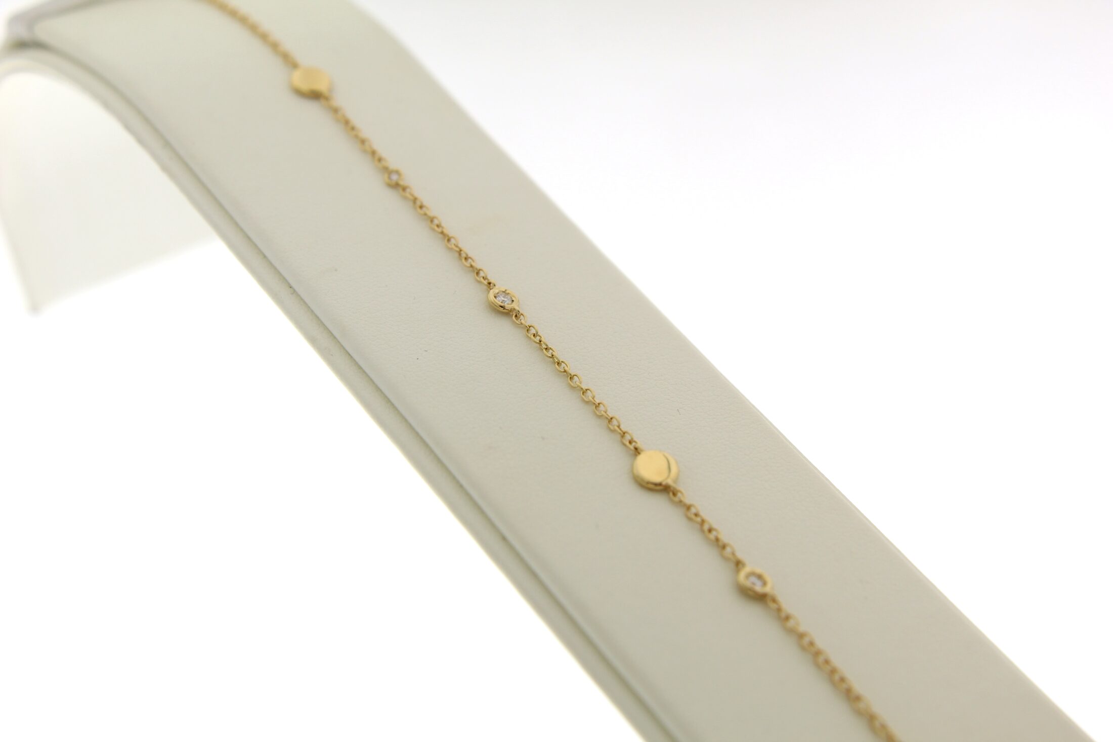 Prachtige 18 karaat geelgouden armband met diamant en gouden plaatjes gezet 5×0.09ct