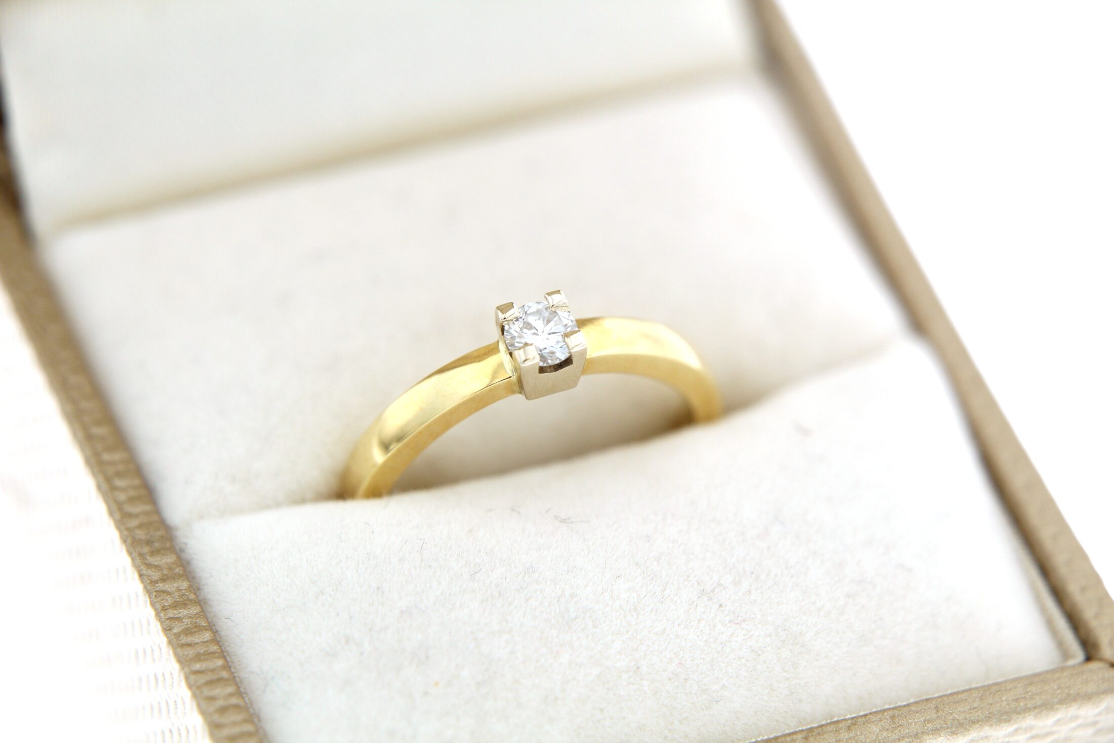 14Karaat geelgouden ring met briljant gezet in een witgouden zetting
