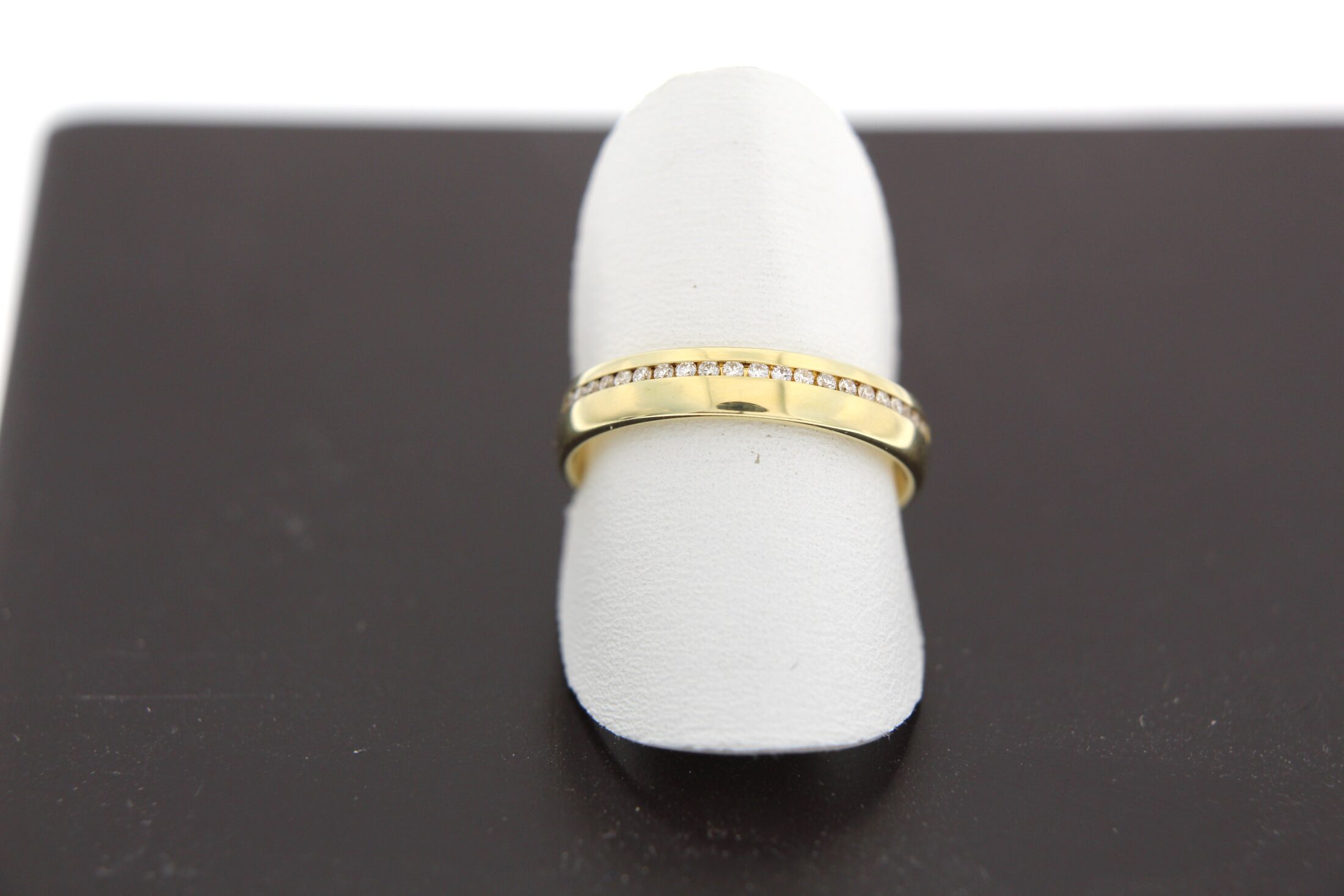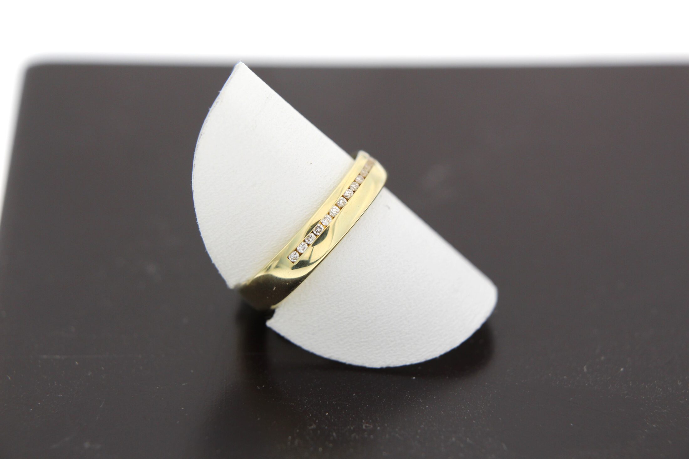 Prachtige 14karaat geelgouden ring met 24-0.12ct tw si briljant gezet.
