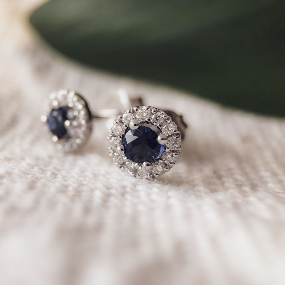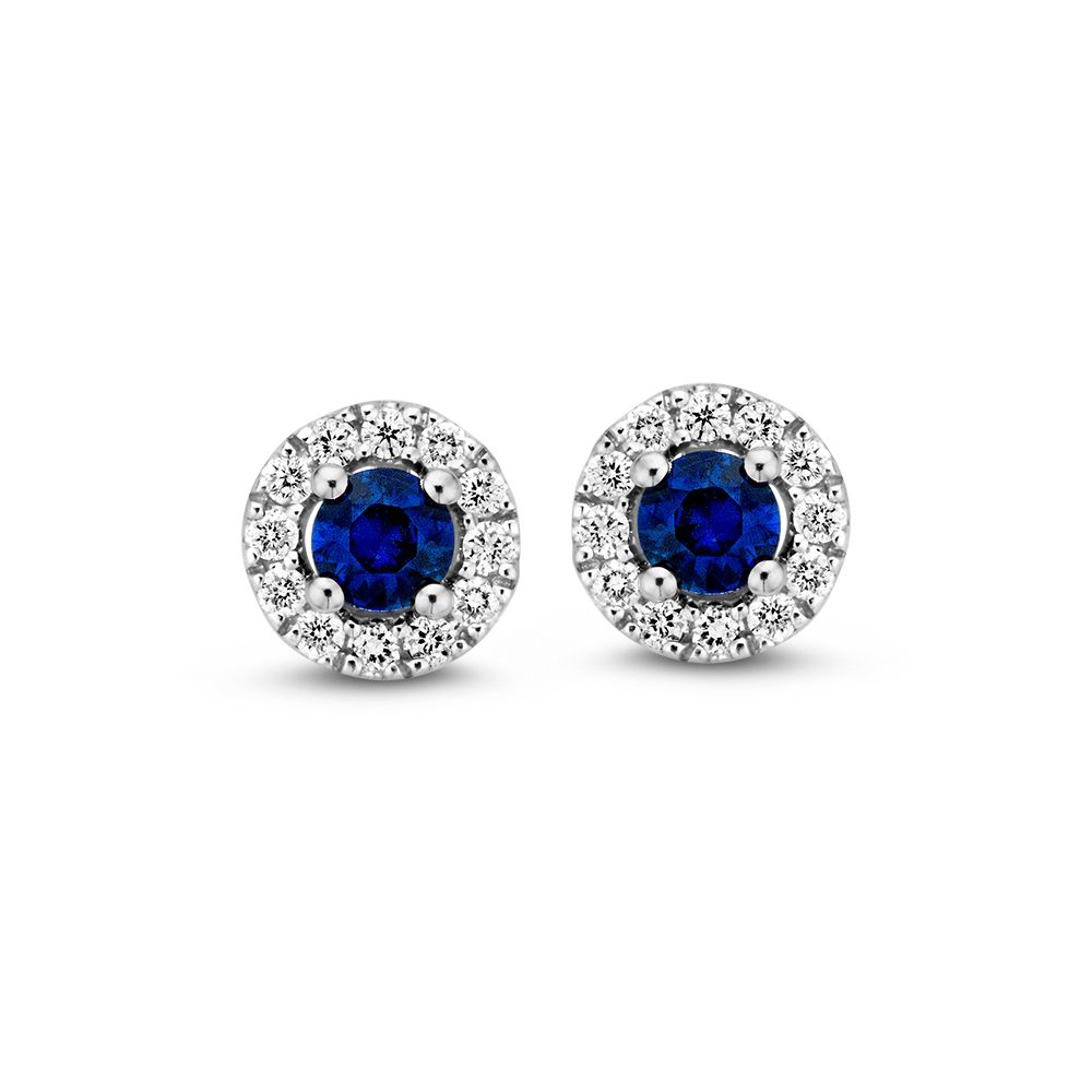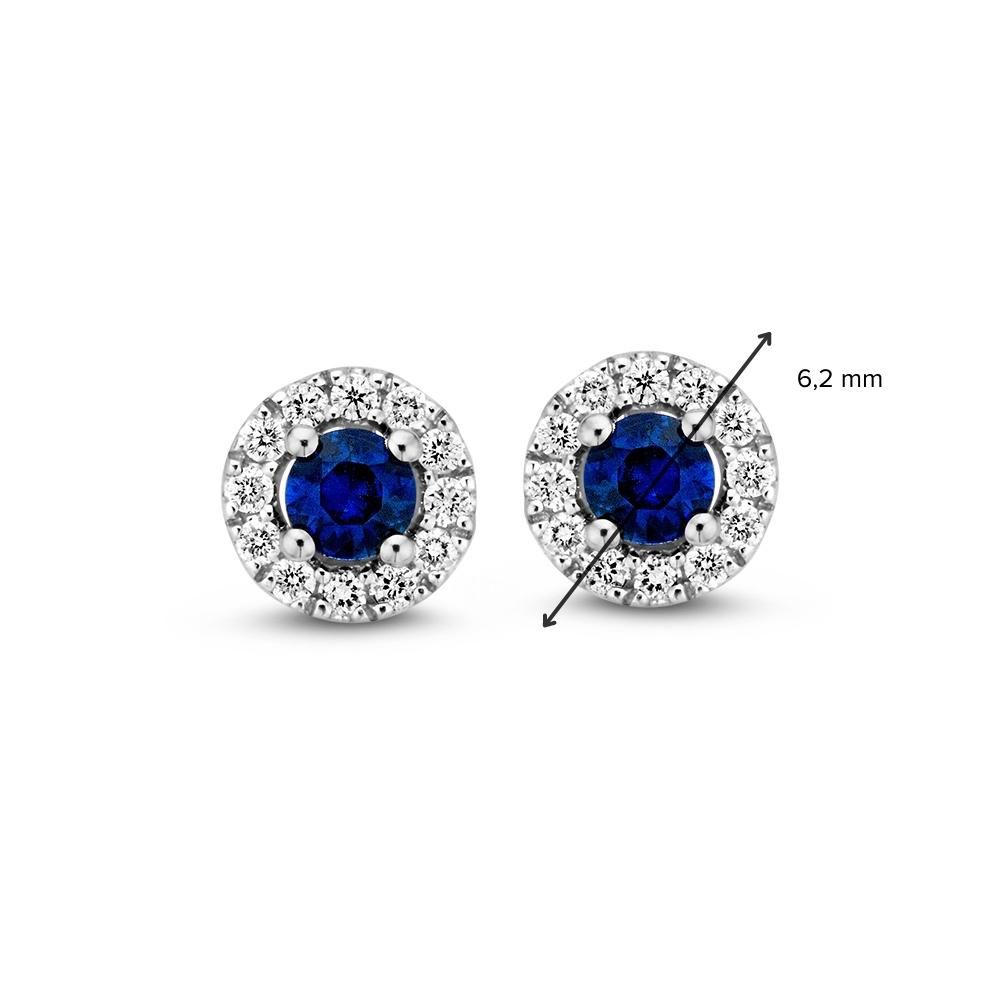 Prachtige witgouden oorstekers met blauw saffiier en briljanten gezet.