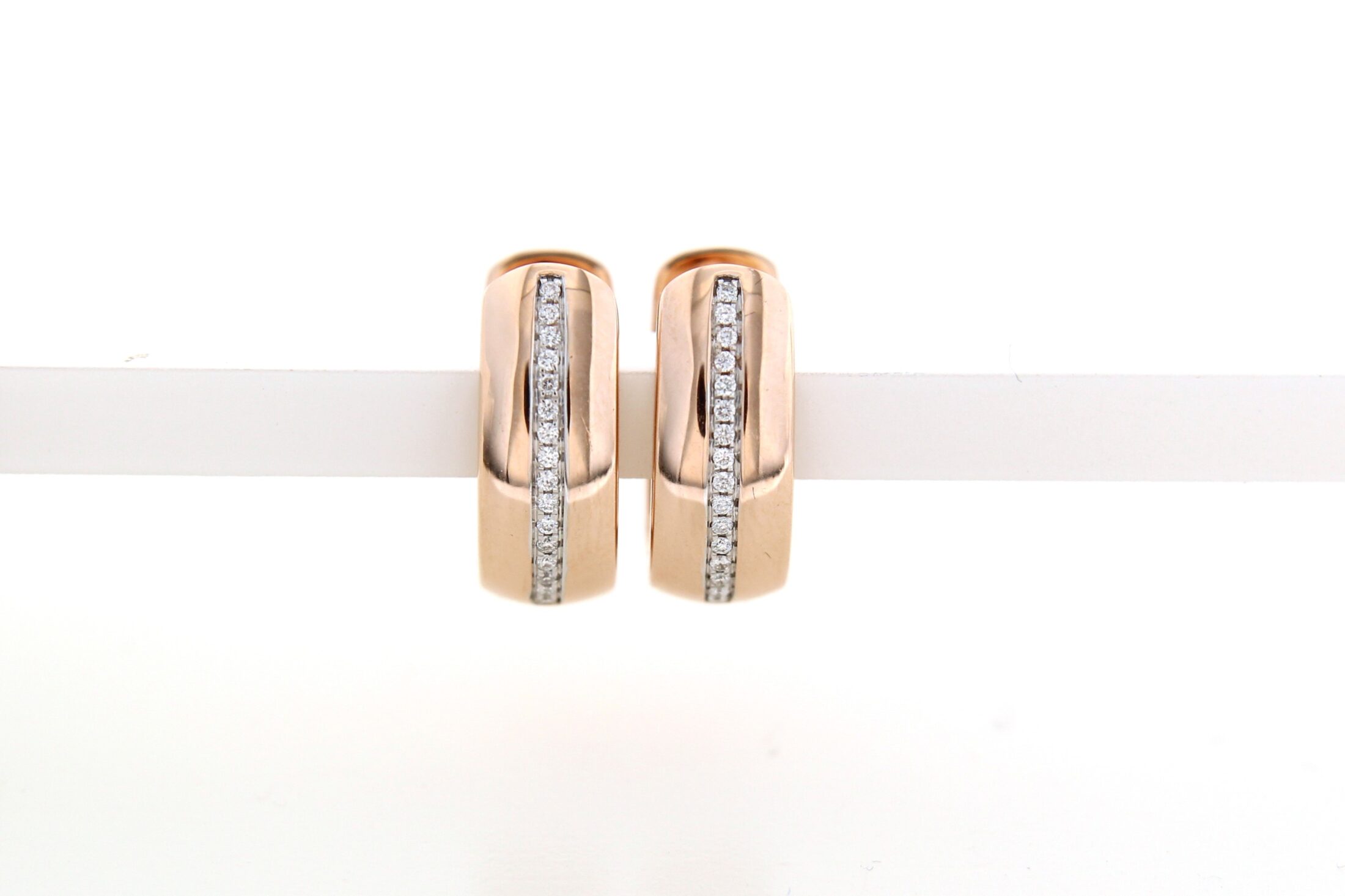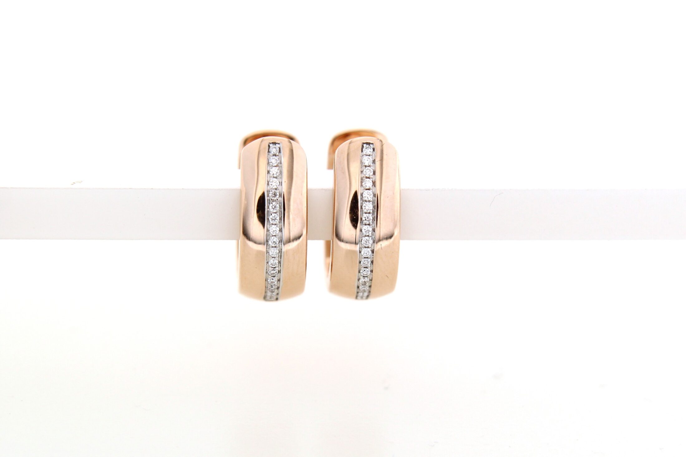 Prachtige 14 karaat rose gouden creolen met 0.08ct briljant