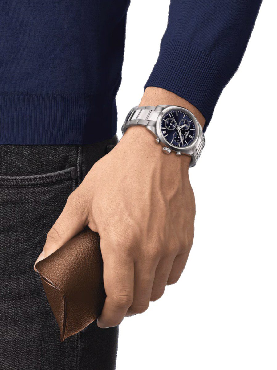 Tissot PR100 Chronograph T150.417.11.041.00 de PR100-collectie biedt klassieke quartz-chronografen in verschillende kleuren. Deze sportieve en toch stijlvolle uurwerken hebben een gepolijste middelste rij op de armband voor een glanzender uiterlijk, een witte schijf in het datumvenster en een standaard secondewijzer. Het G10.212 chronokwartsuurwerk biedt precisie en robuustheid, aangevuld met waterbestendigheid tot 10 bar (100 meter/330 voet), en de zichtbaarheid bij weinig licht wordt gegarandeerd door de Super-LumiNova®-coating op de naaldvormige wijzers .