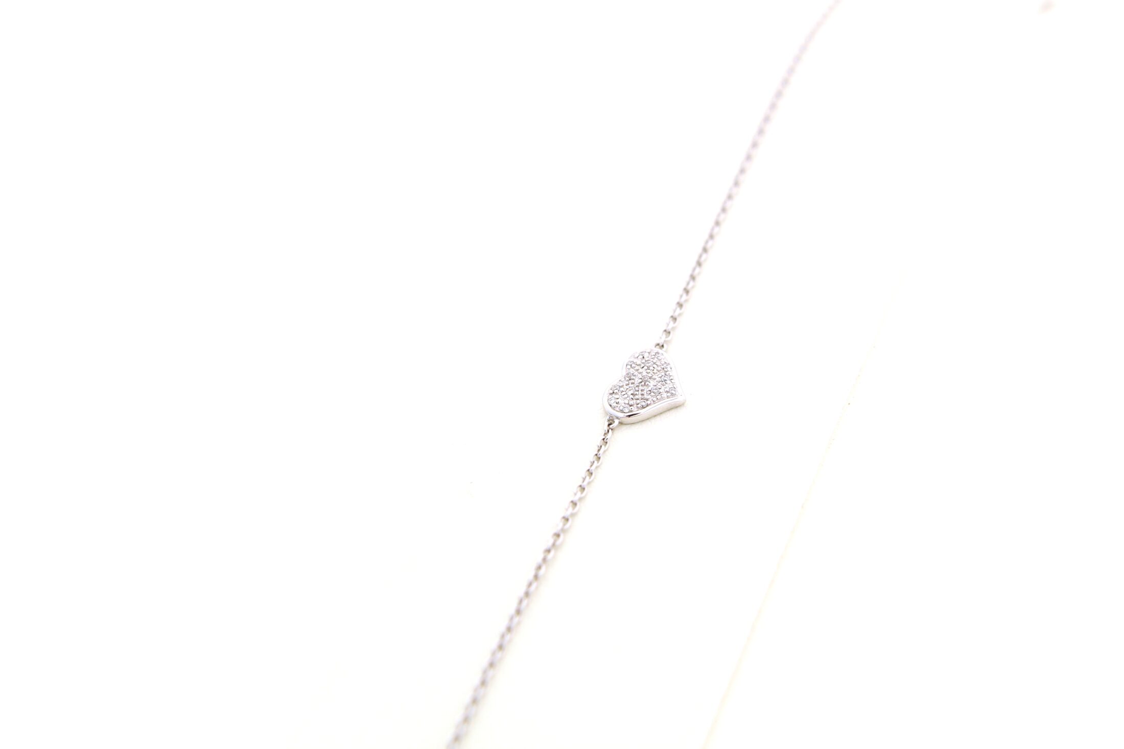 14 karaat witgouden armband met diamanten hartje pave gezet