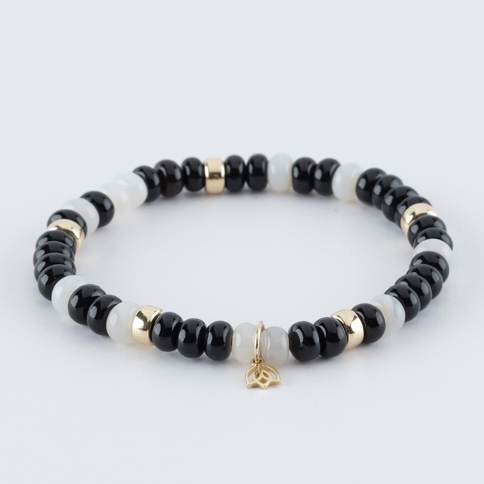 Edelstenen armband (6x4mm kralen) | Vijf 14kt gouden beads & tulp logo