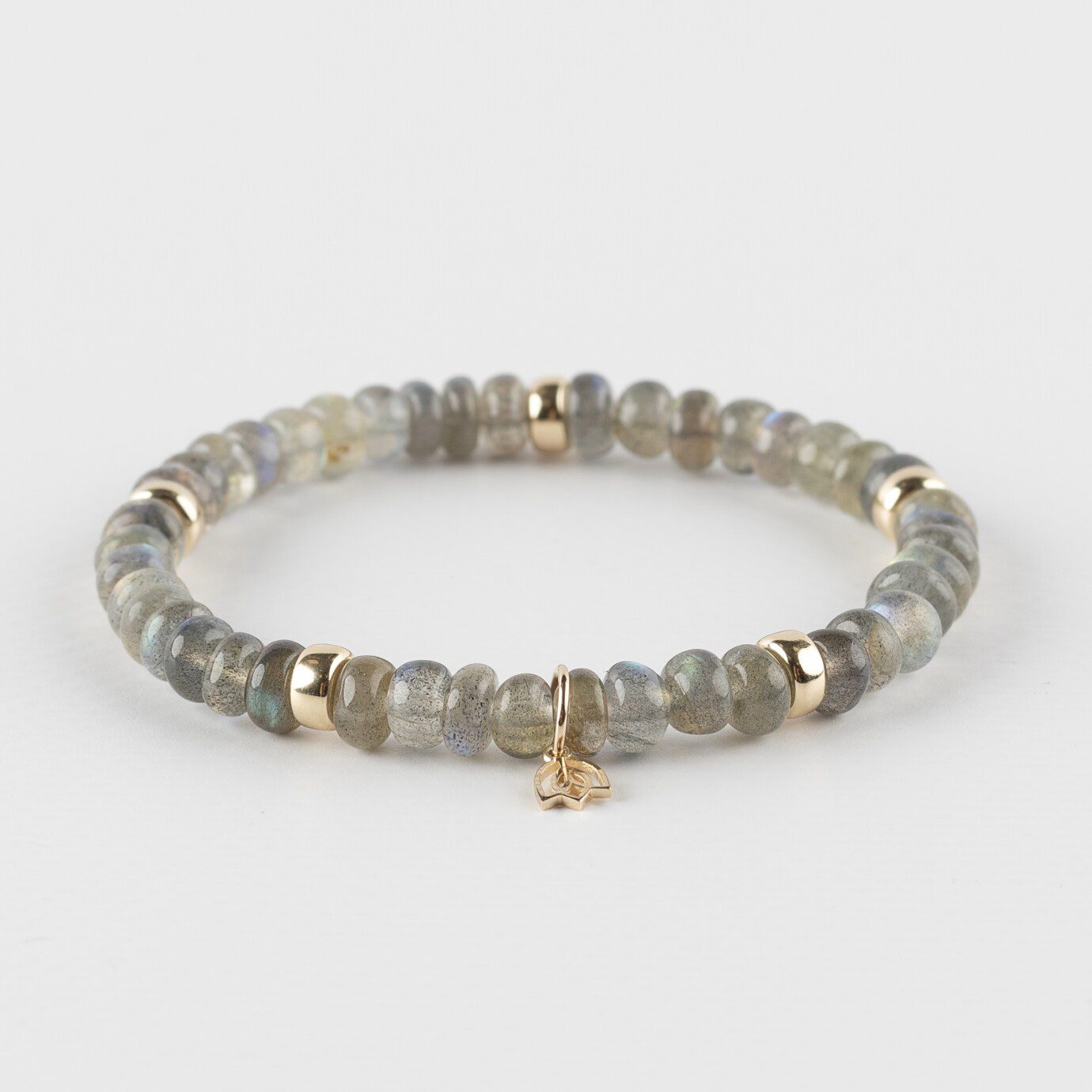 Edelstenen armband (6x4mm kralen) | Vijf 14kt gouden beads & tulp logo