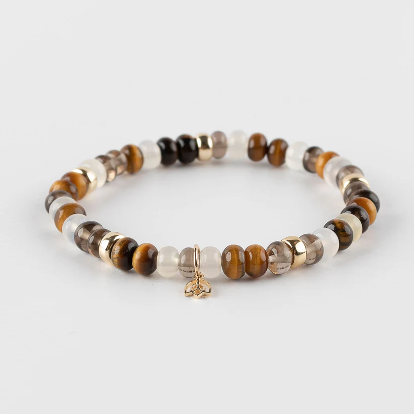 Y&G Eye of the Tiger | Edelstenen armband, 14karaat goud met tijgeroog/agaat/theekwarts