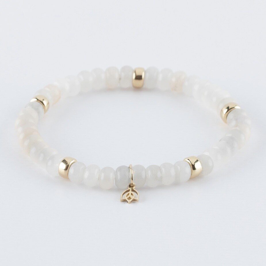 Edelstenen armband (6x4mm kralen) | Vijf 14kt gouden beads & tulp logo